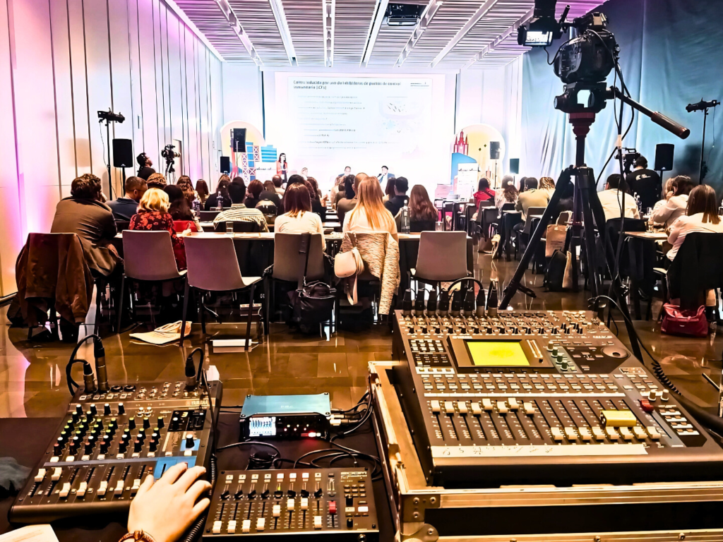 Equipamos tu evento con mesas digitales y analógicas, altavoces ajustados al entorno y soluciones de envío de audio para streaming o racks de prensa.